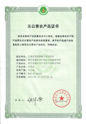 無(wú)公害農(nóng)產(chǎn)品證書(shū)